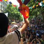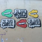 From left to right: Beit Haverim’s Star of David. Graffiti in the Marais reads “I am Jewish.” The crowd from the float during the Pride Parade in Paris, 2015. The front of the Beit Haverim float in Paris 2015. Charlie Hebdo’s edition following pride 2015 features the Beit Haverim float in cartoon.