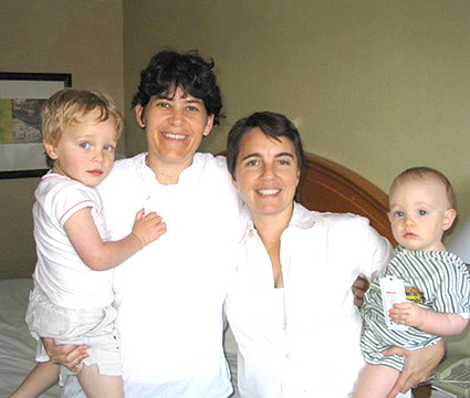 Felicia Park-Rogers holds Benjamin, left, as Rachel Timoner holds 1-year-old Eitan. |